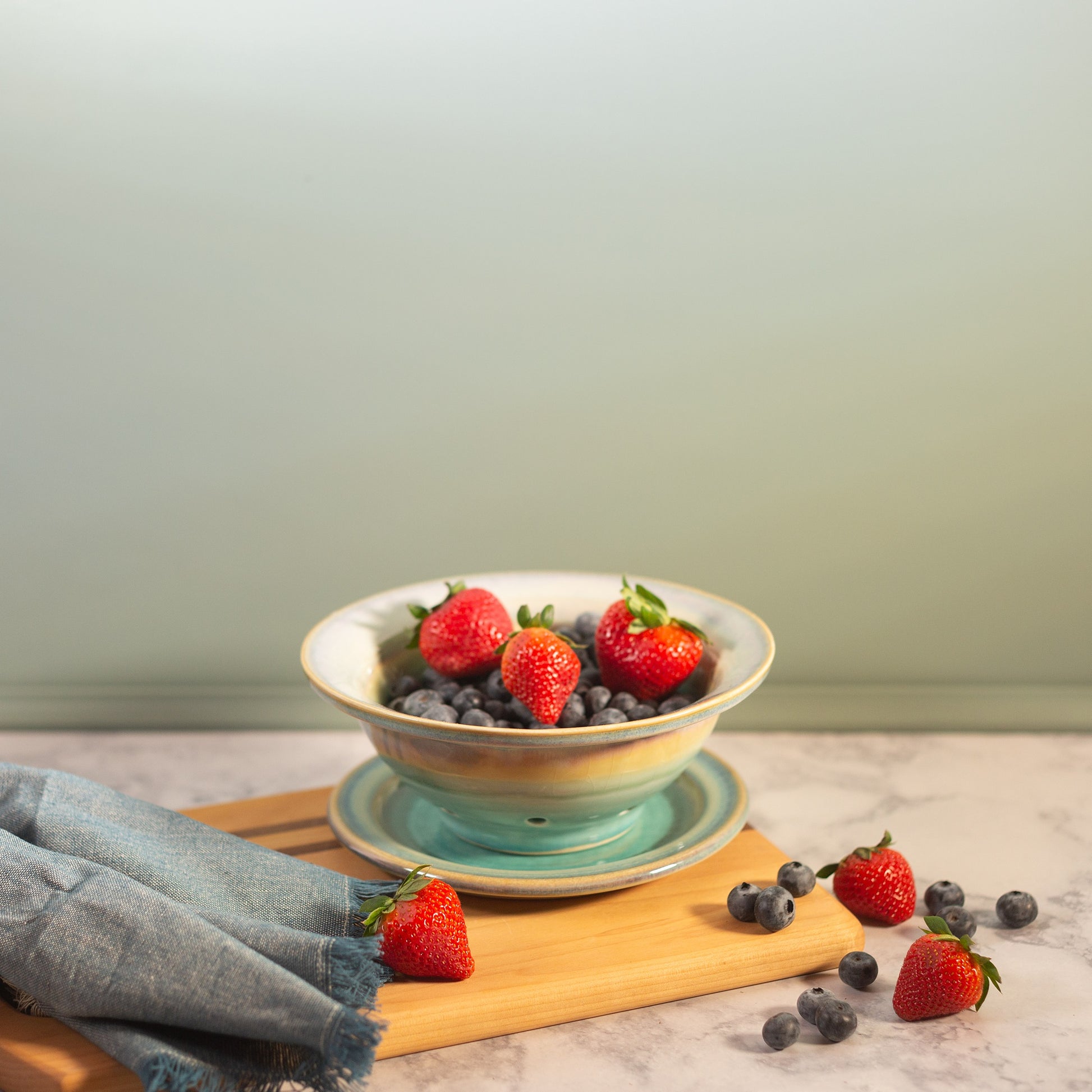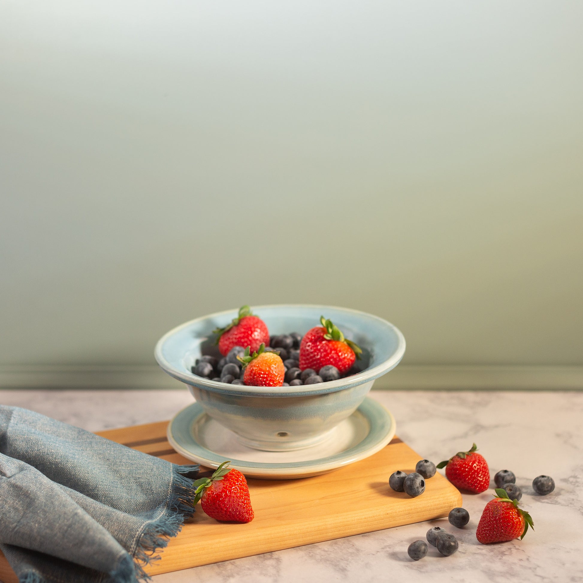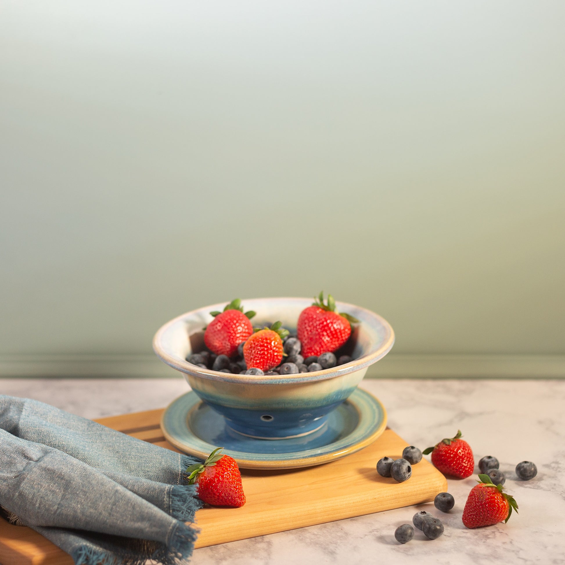 A summertime favorite, our berry bowl and plate set is just what you need to hold those fresh-picked berries. Give them a good rinse, toss them into our colander-style bowl to drain, and then bring out to the patio to enjoy!
