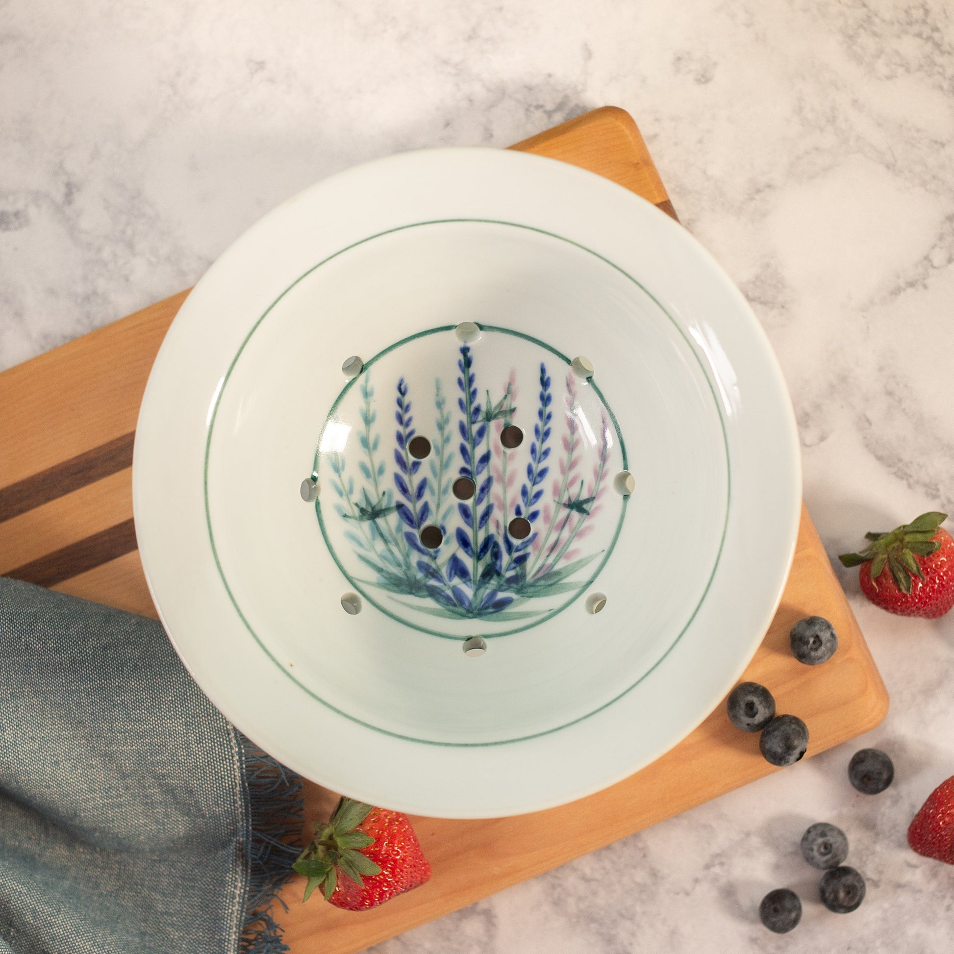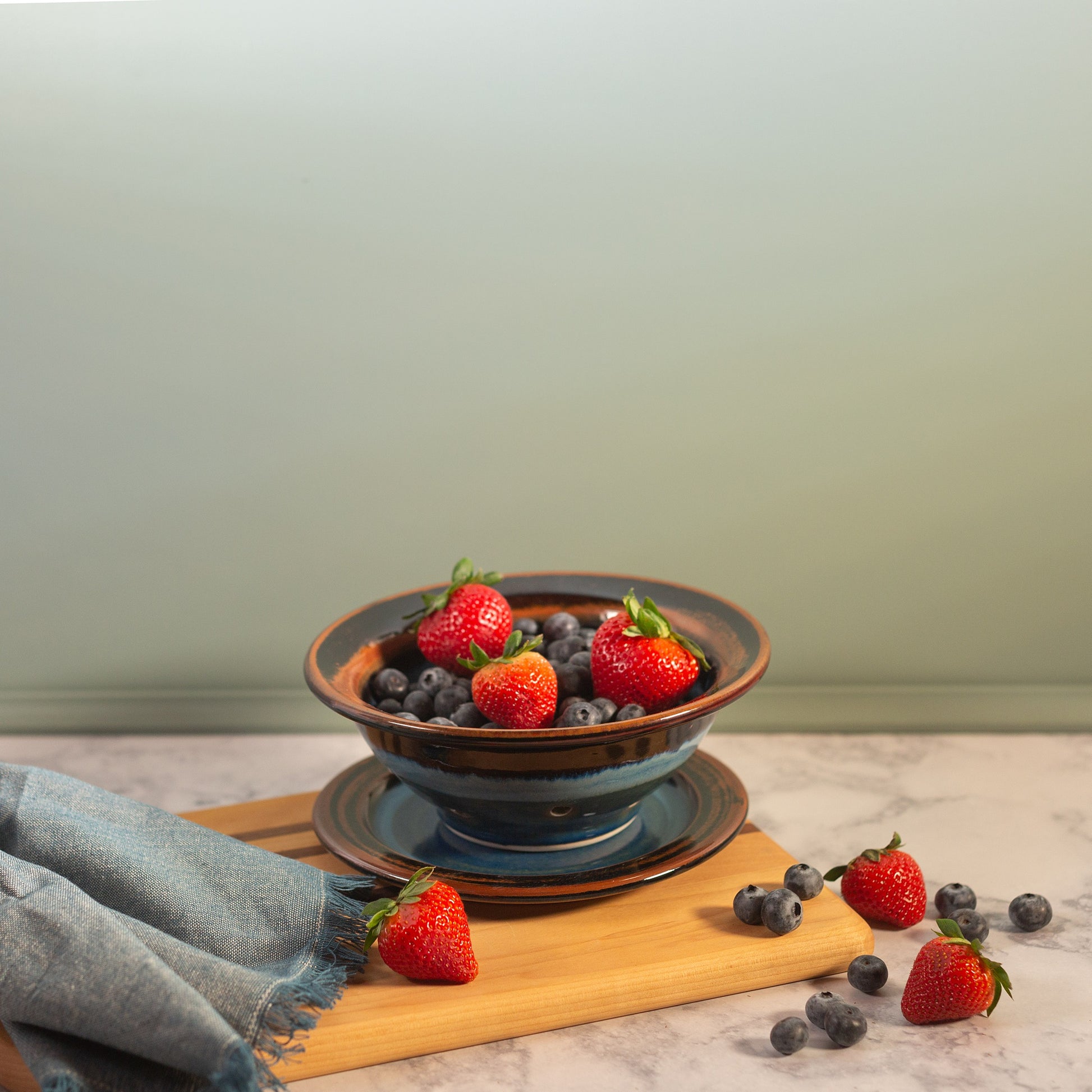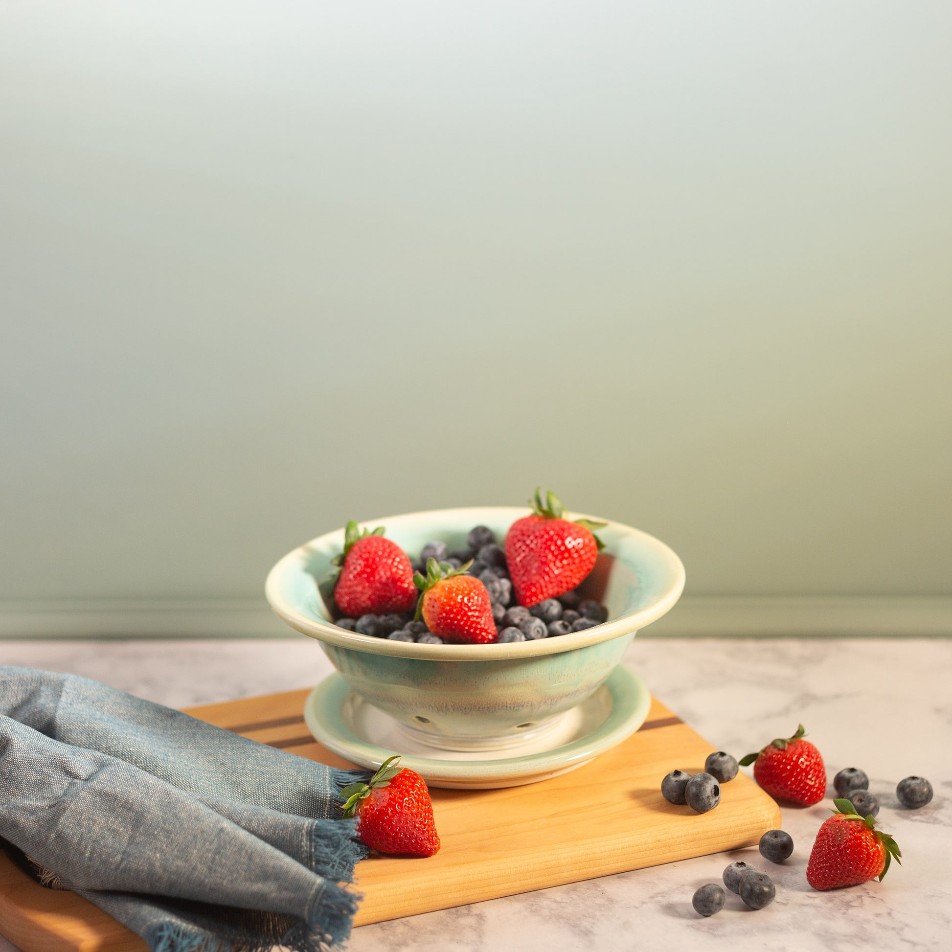 A summertime favorite, our berry bowl and plate set is just what you need to hold those fresh-picked berries. Give them a good rinse, toss them into our colander-style bowl to drain, and then bring out to the patio to enjoy!